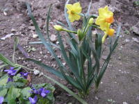 三月の初めから春の息吹を感じて ラッパ水仙 スミレ さくら草と